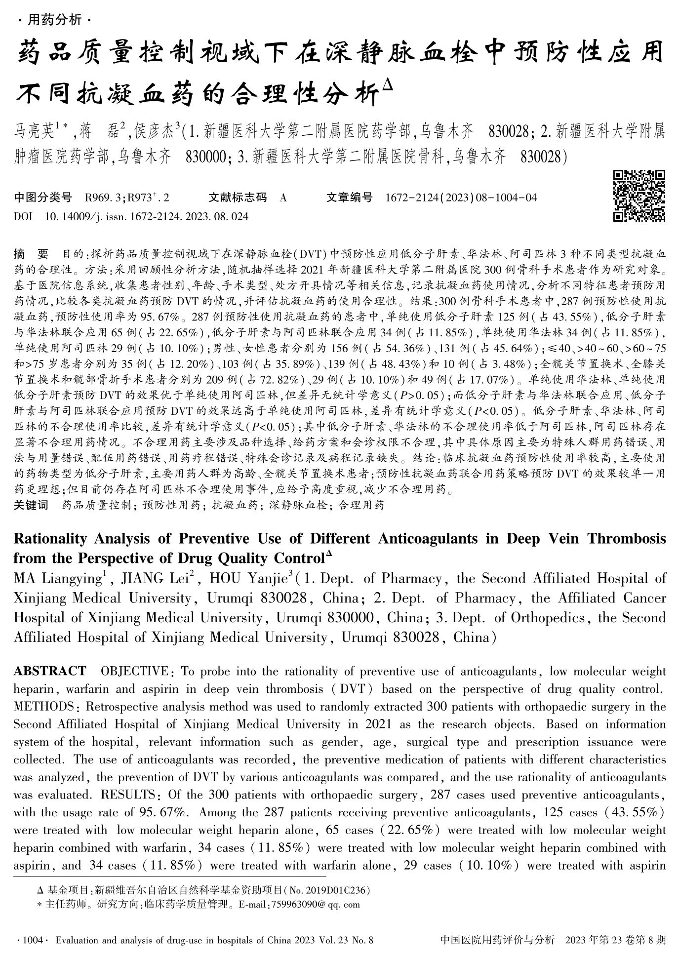 藥品質(zhì)量控制視域下在深靜脈血栓中預(yù)防性應(yīng)用不同抗凝血藥的合理性分析