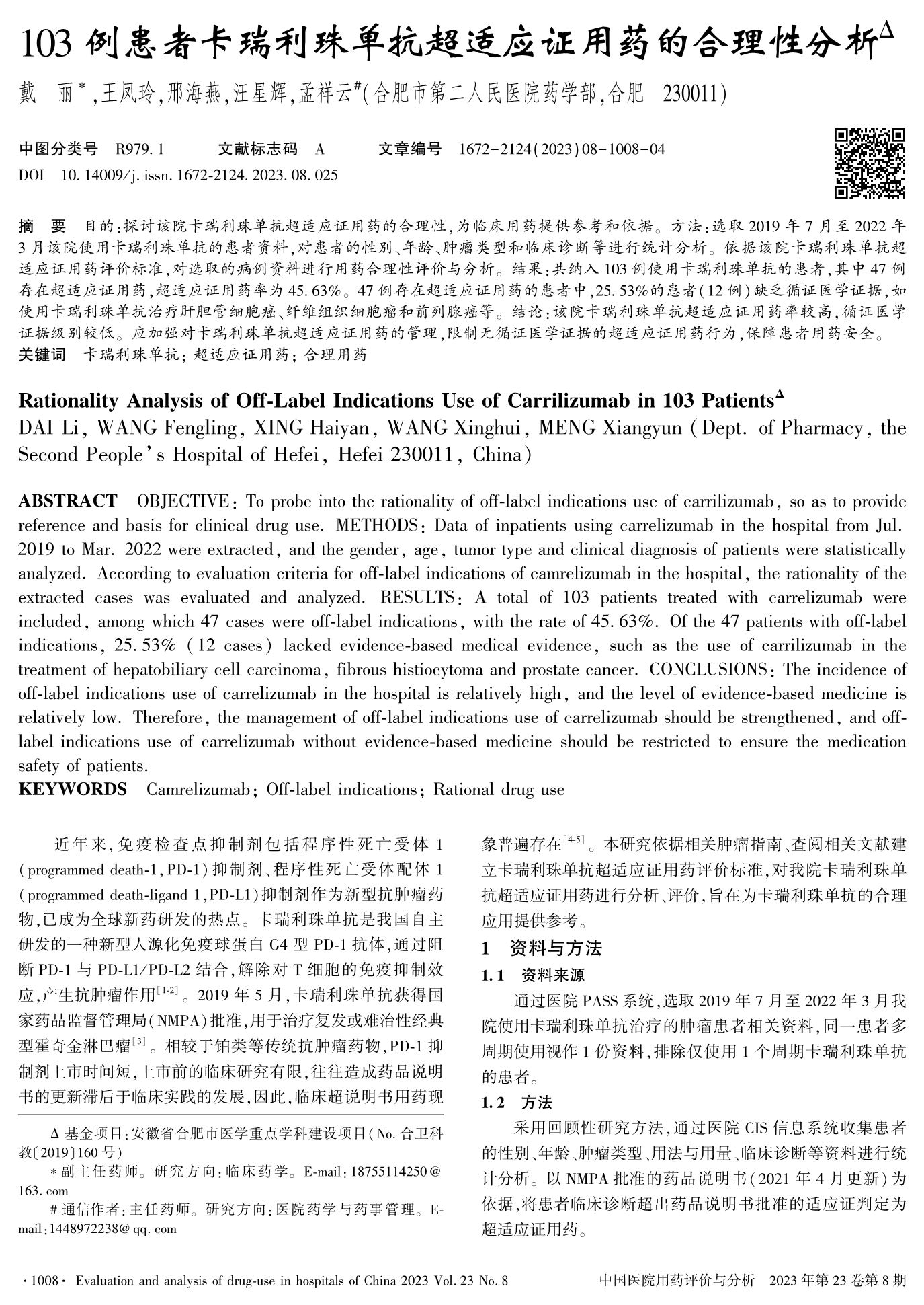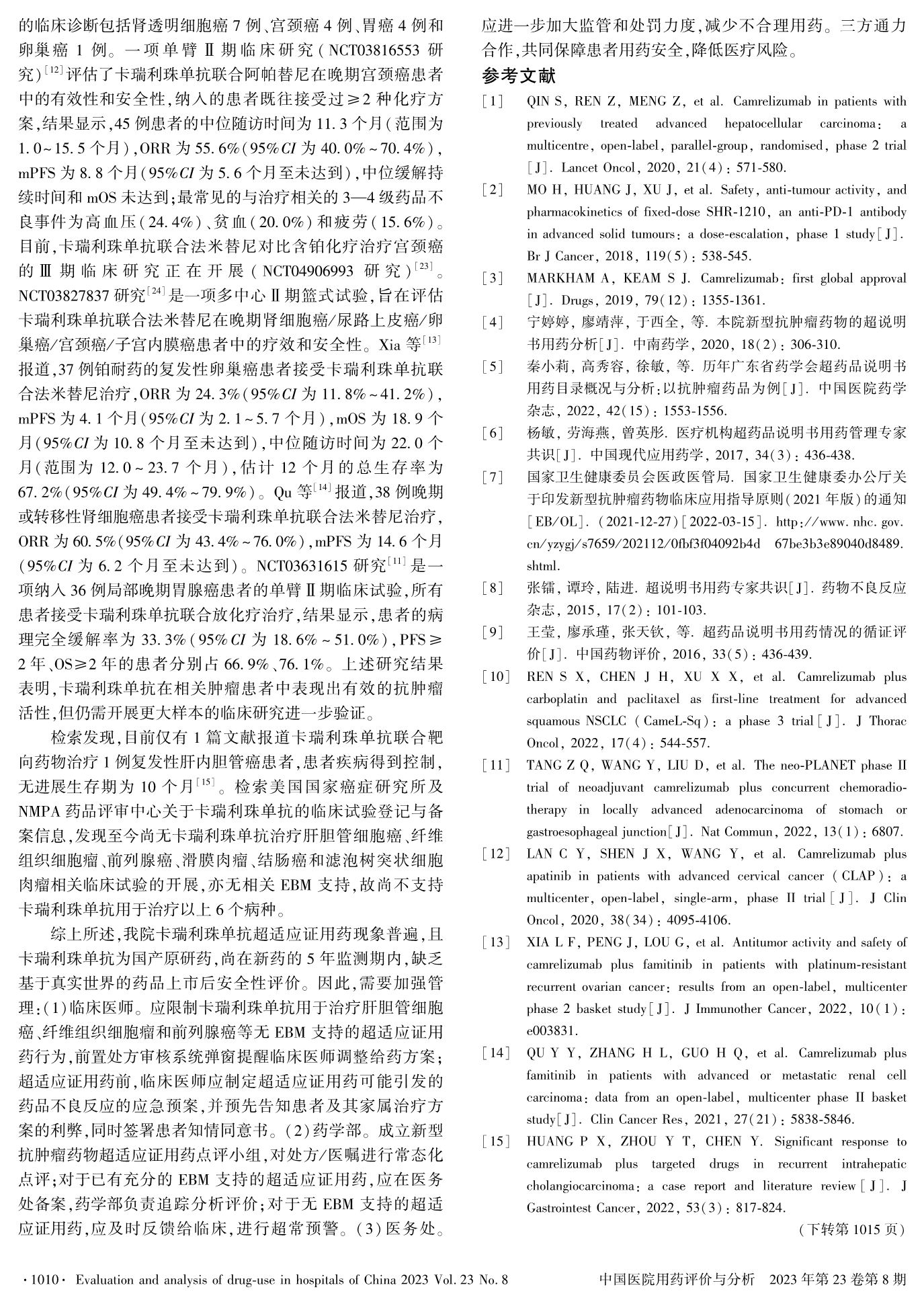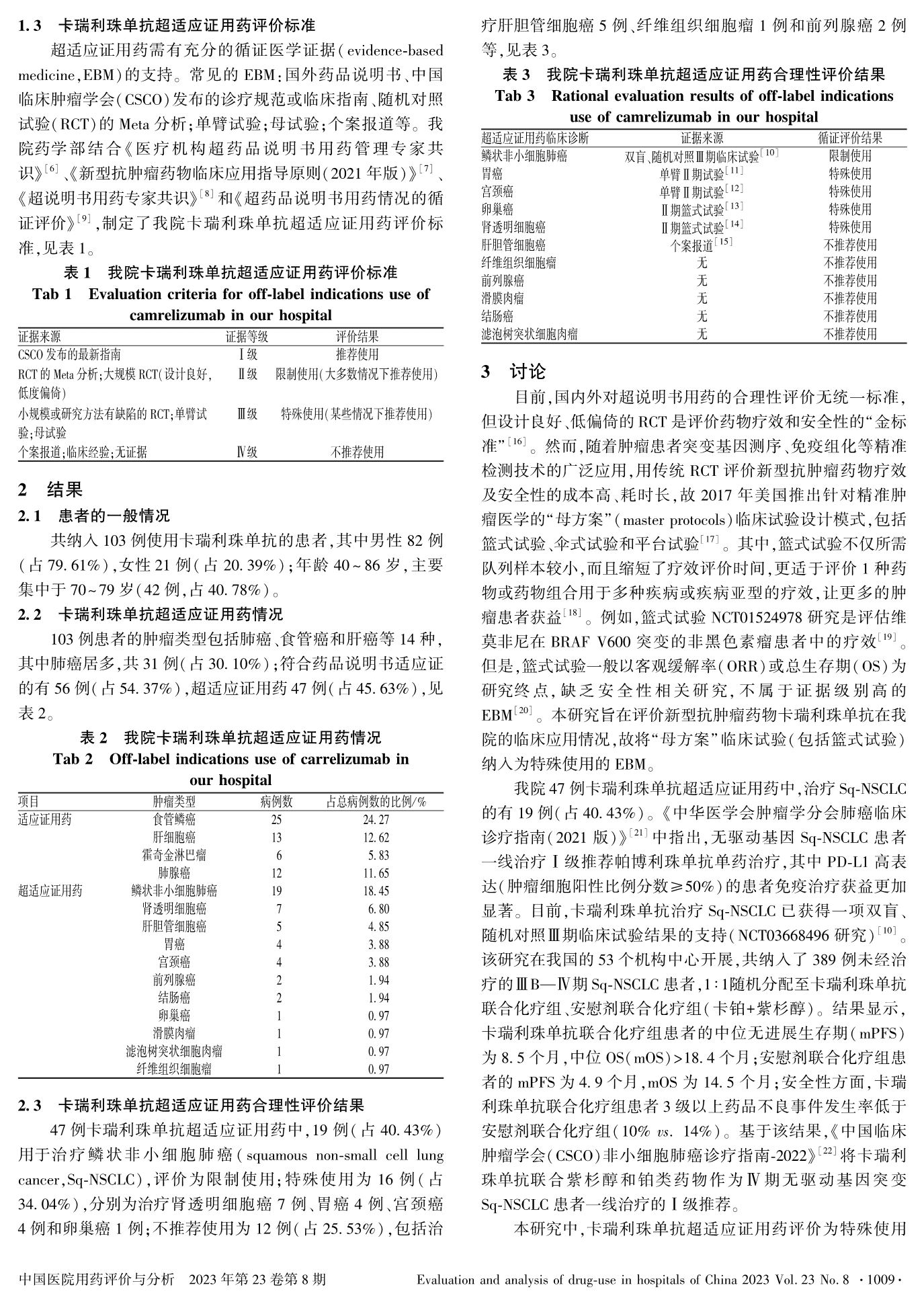 103例患者卡瑞利珠單抗超適應(yīng)證用藥的合理性分析