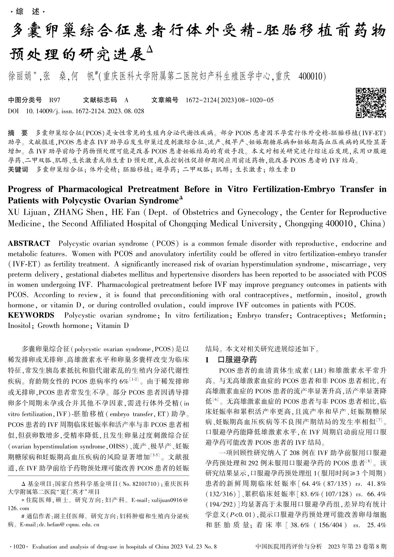 多囊卵巢綜合征患者行體外受精-胚胎移植前藥物預(yù)處理的研究進(jìn)展