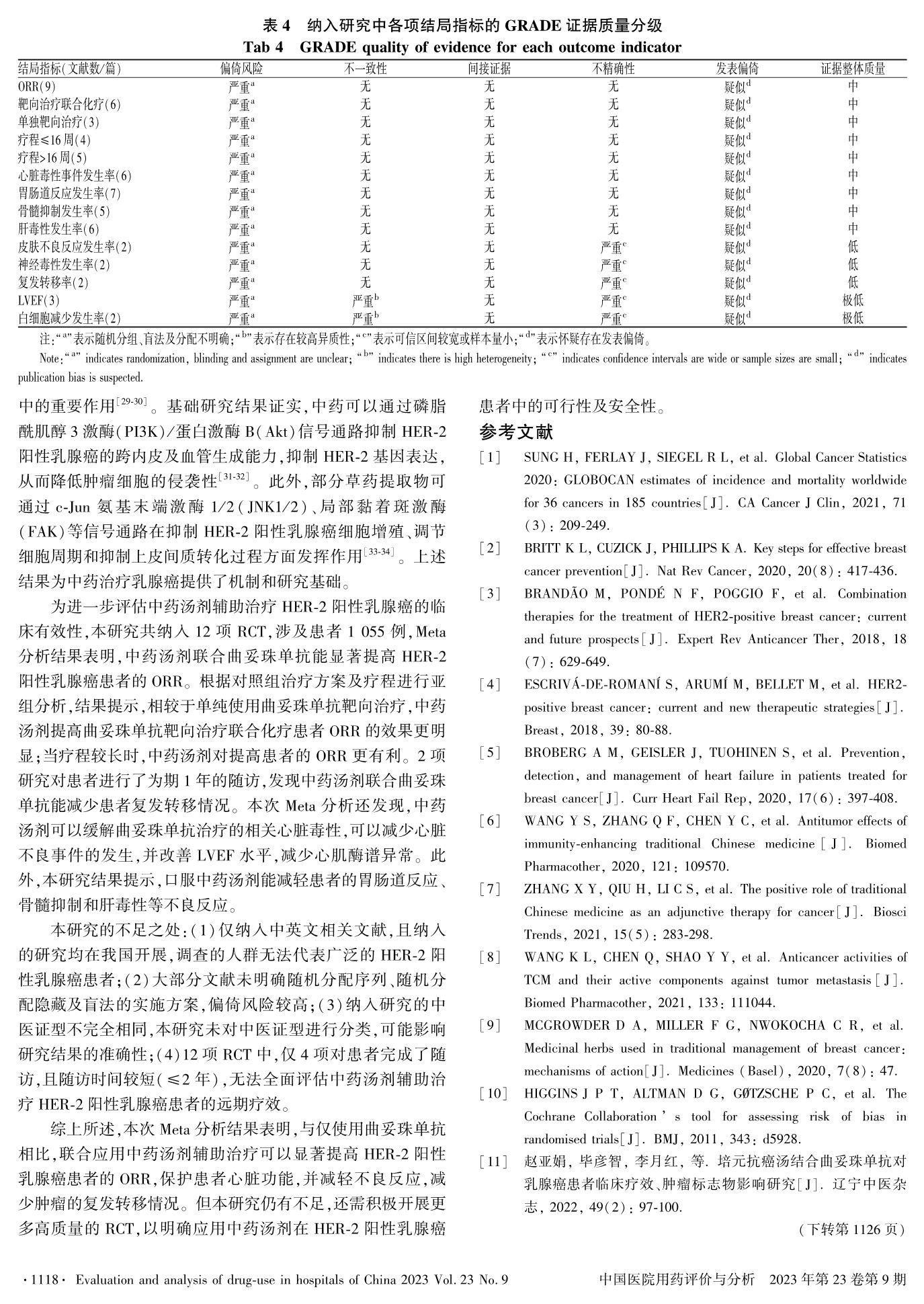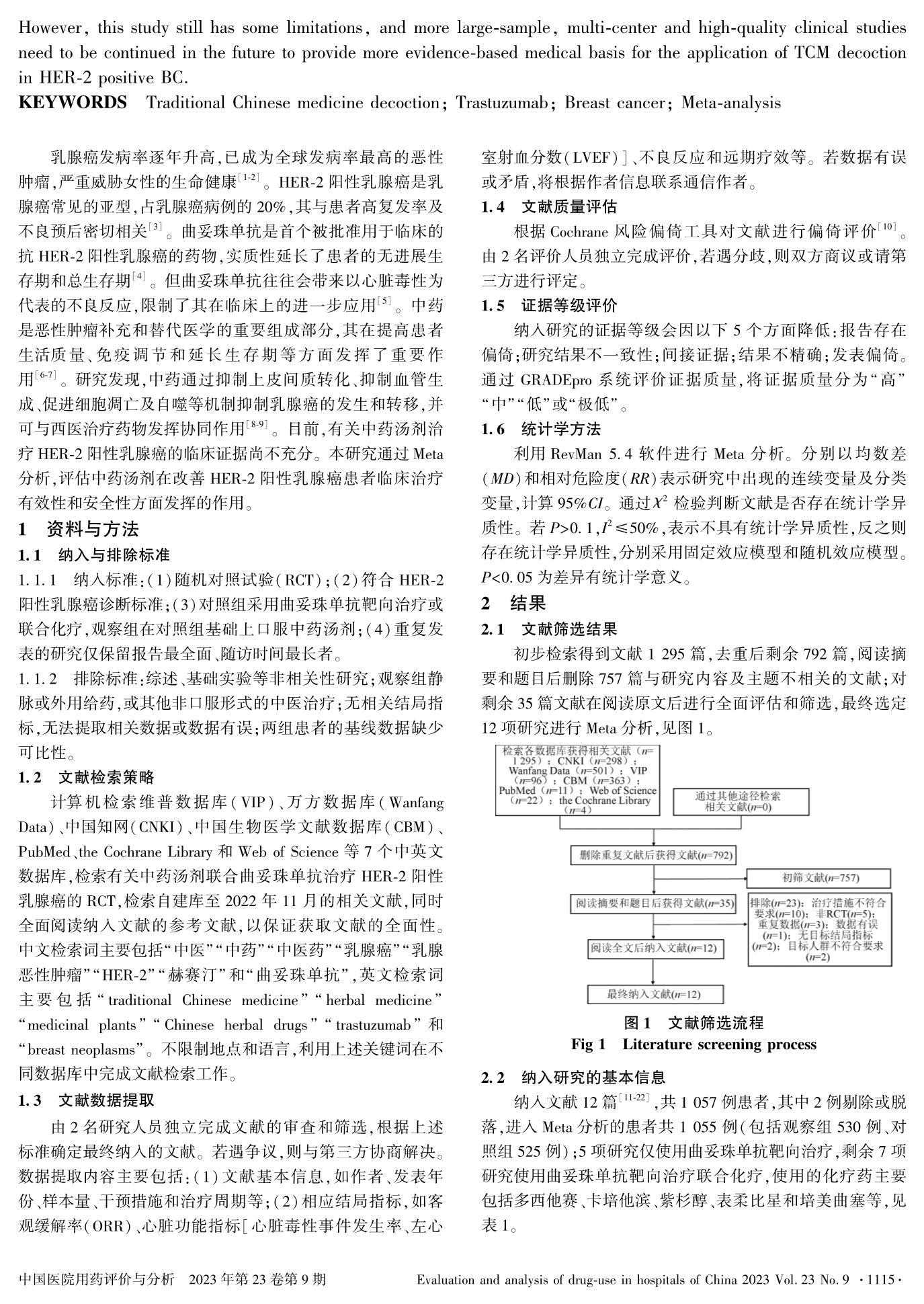 中藥湯劑聯合曲妥珠單抗治療HER-2陽性乳腺癌臨床療效的Meta分析