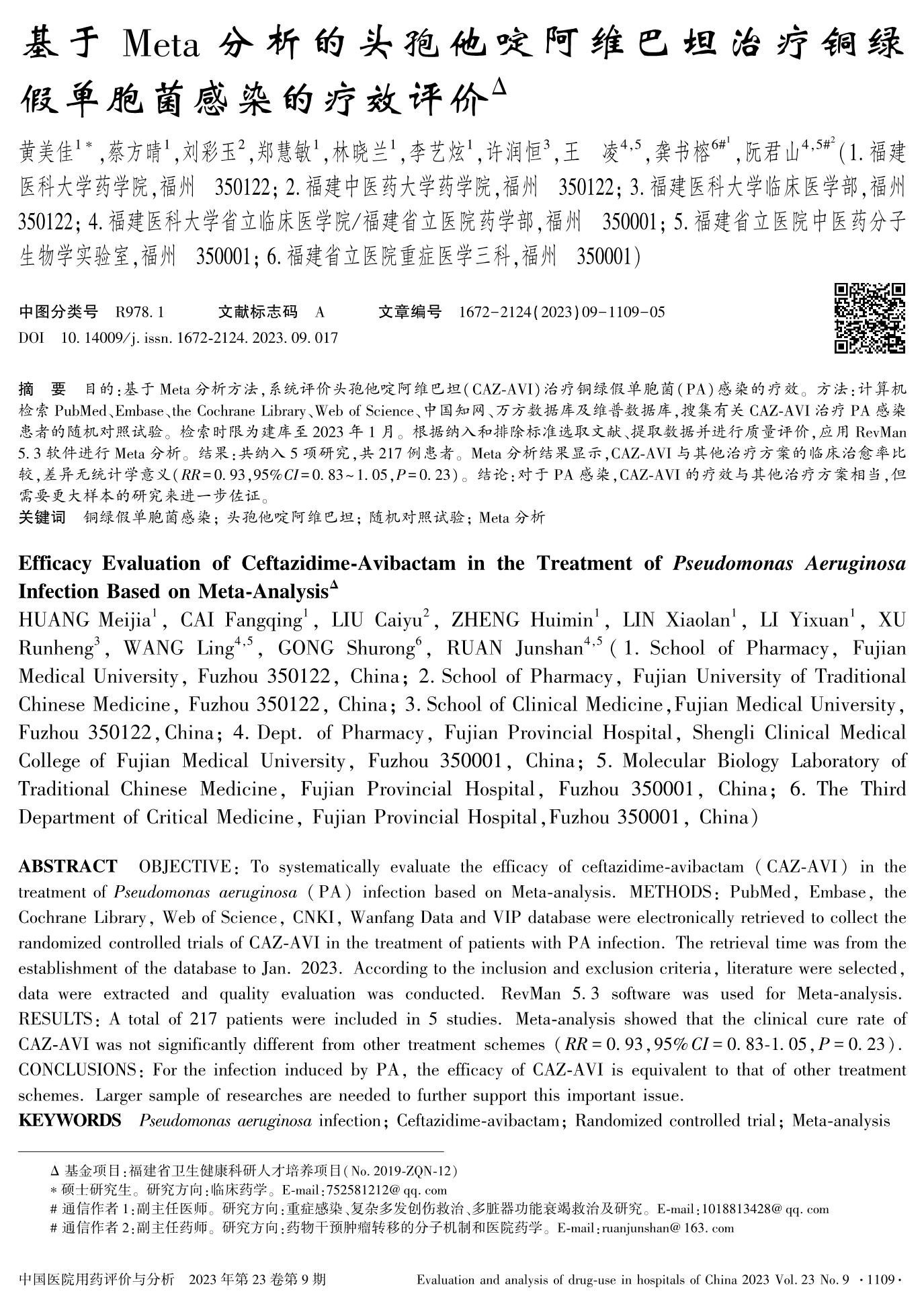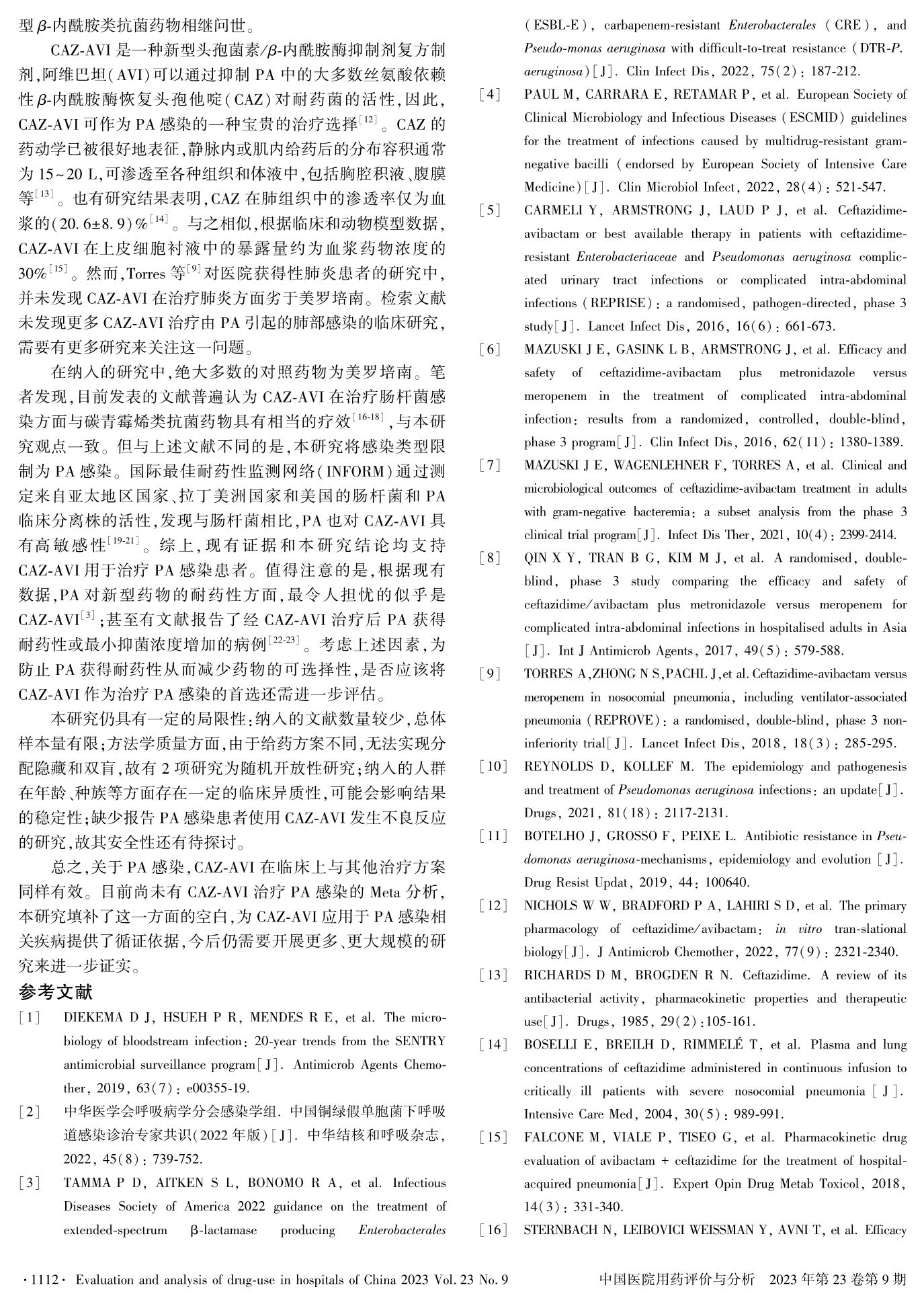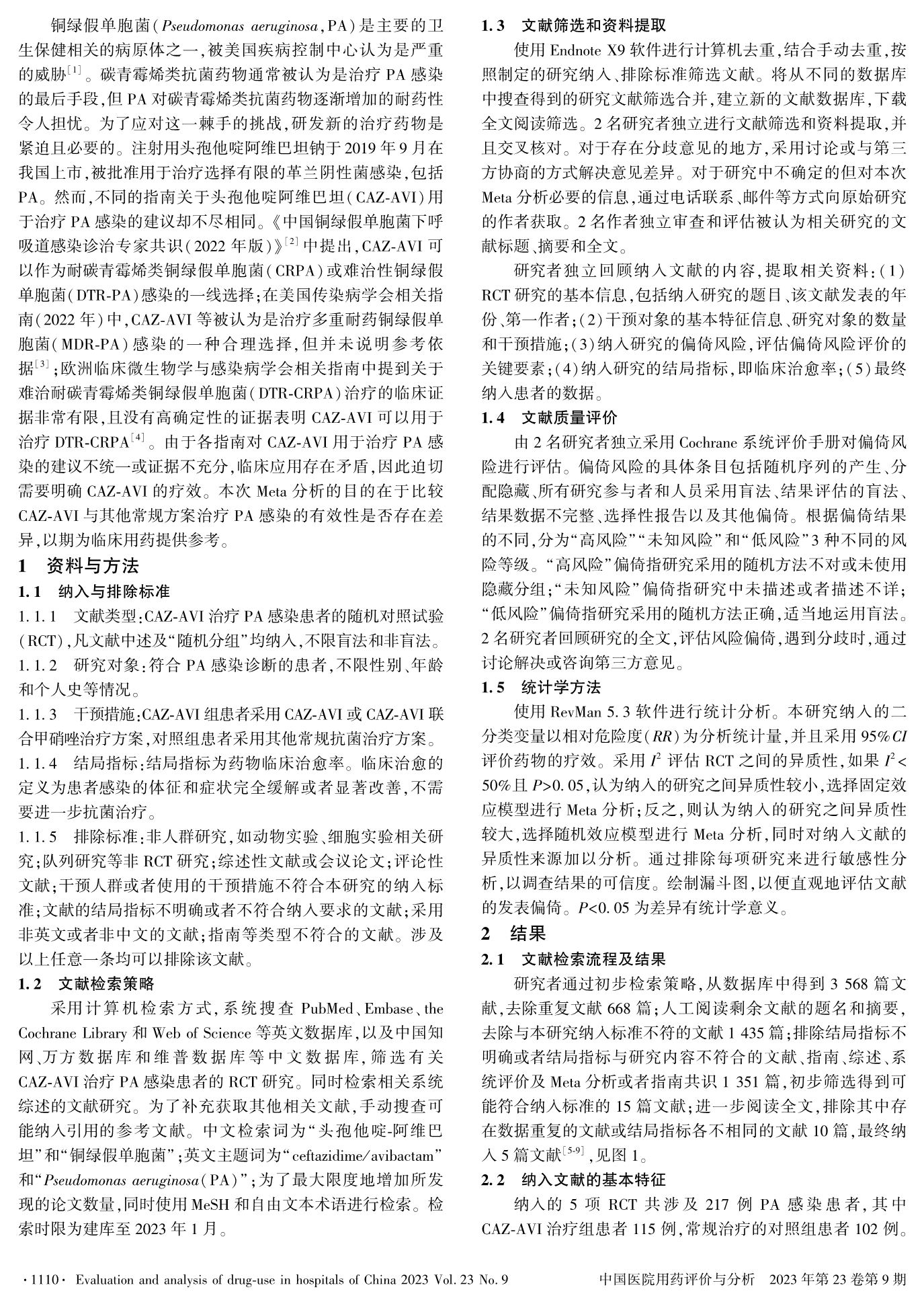 基于Meta分析的頭孢他啶阿維巴坦治療銅綠假單胞菌感染的療效評價