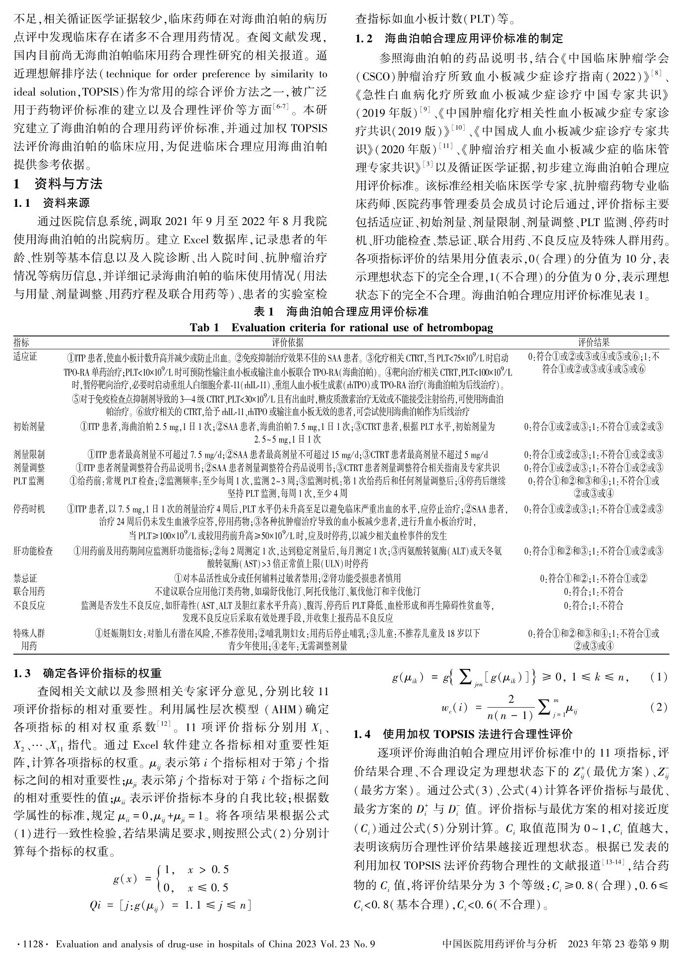 海曲泊帕合理應(yīng)用評(píng)價(jià)標(biāo)準(zhǔn)的建立與應(yīng)用