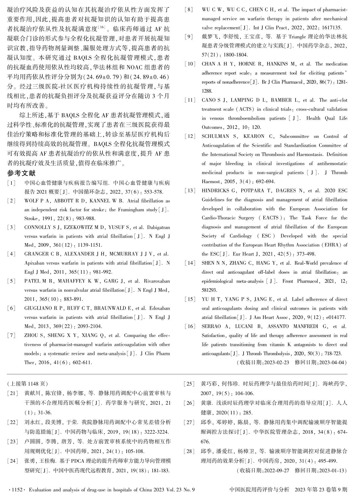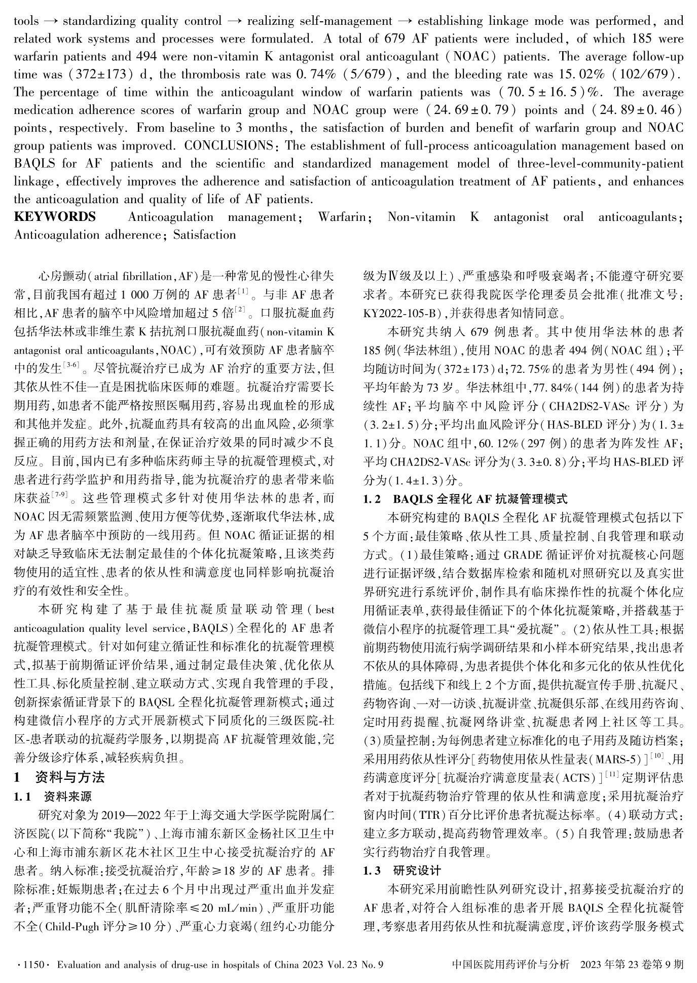 基于最佳抗凝質(zhì)量聯(lián)動管理的全程化心房顫動抗凝管理新模式的建立與實(shí)踐